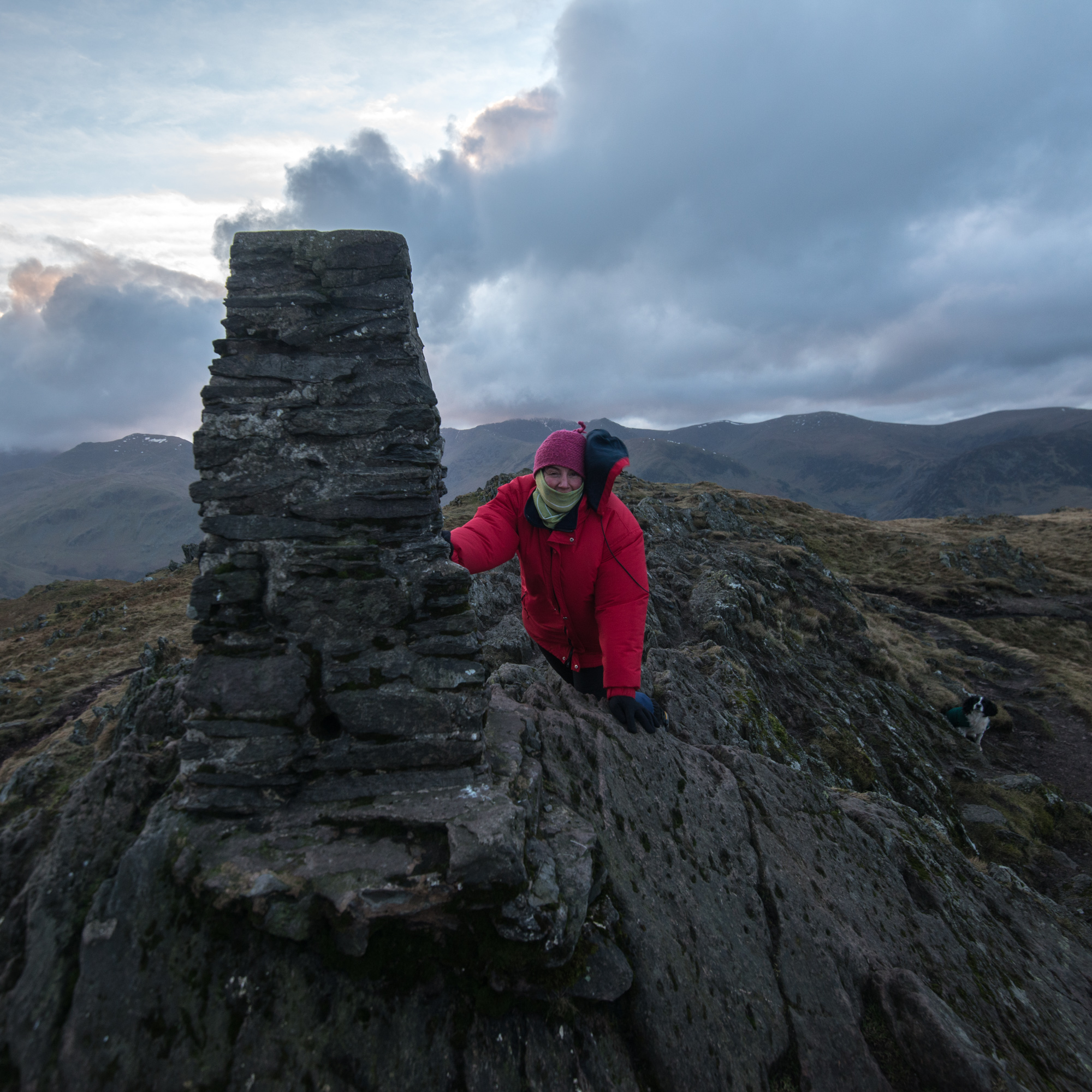 We reach Place Fell around 5.30pm, but I can’t reach the summit cairn directly: I am knocked off balance by the wind. I crouch down and reassess, and, with my body low to the rocks, pick my way towards the highest point. Then I find a spot out of the worst of the wind, facing east, and watch the sky pass through a spectrum of pinks. The land glows softly, as if it’s made of felt. I smile at the intensity of this wind, now that I’m relatively stable again: it’s worth getting out to feel this, to be blown sideways, to get a sense of the elements, to feel small and insignificant. Next time I drive on the valley road and look up I will have a sense of how inhospitable this place can be to humans, and I’ll know how a raven can drift on the gusts and can turn, with the smallest tilt of its tail, to pause and look directly at me.