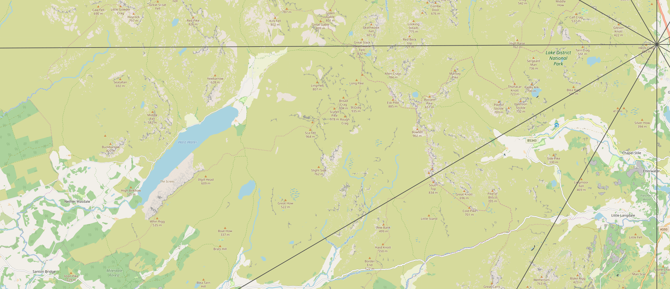The eight-nine o’clock segment (240 – 270 degrees from the centre). Browse the map to explore the area: you can zoom in and out and change views to suit you.